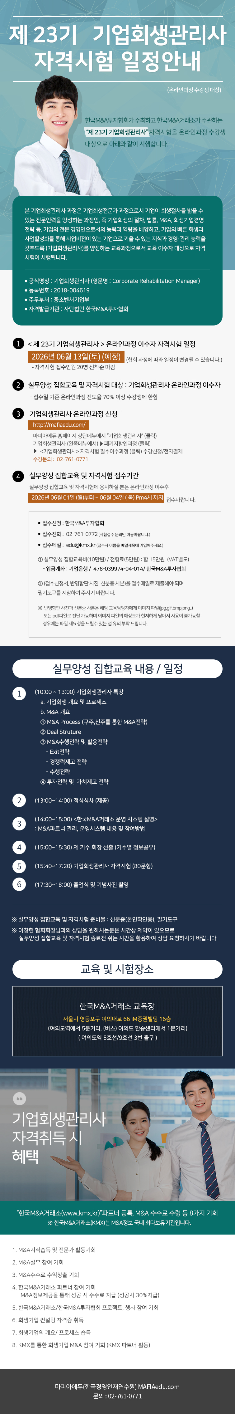 제 23기 "기업회생관리사" 자격시험 일정안내 6/13